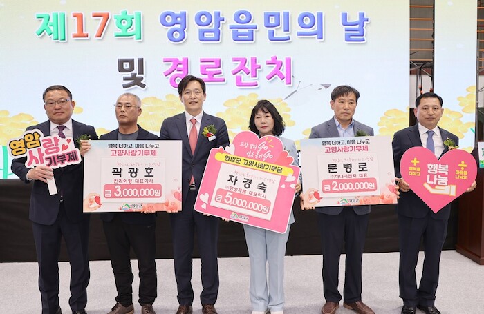 지난달 7일부터 이달 8일까지 영암군 7개 읍·면에서 열린 읍·면민의 날 및 경로잔치에서 14명의 기부자들이 5,000여만 원을 기탁하며 고향사랑기부에 동참한 것.