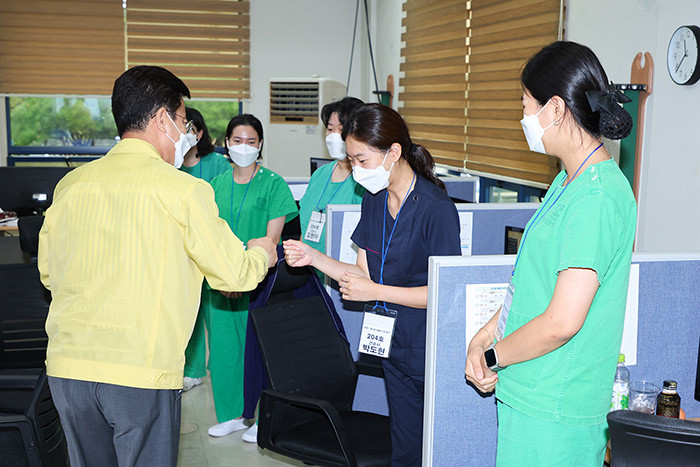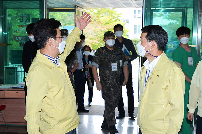 허태정 시장은 “코로나19 환자 관리와 치료를 위해 헌신하고 있는 의료진과 근무자들께 깊은 감사를 드린다”며, “추석 연휴 이후 환자 수 증가가 우려되는 만큼 긴장을 늦추지 말고 입소 환자 관리와 치료에 최선을 다해 달라”고 말했다. (사진=대전시)