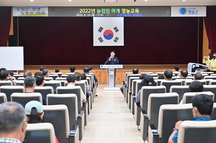 [세계로컬타임즈 이장학 기자] 청송군은 8월 22일부터 오는 26일까지 농업기술센터, 진보문화체육센터, 남청송농협 안덕지점에서 관내 농업인 550여 명을 대상으로 ‘2022년 농업인 하계 영농교육’을 실시하고 있다.