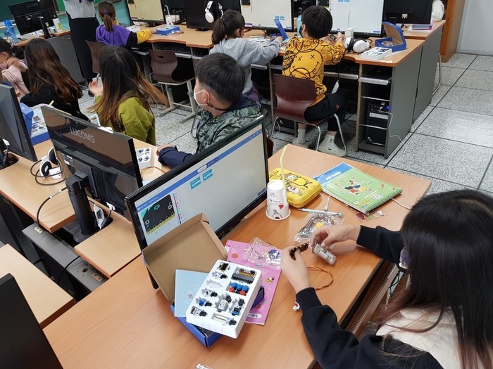 학생들의 희망에 따라 1~2학년은 5개의 프로그램을 부스형식으로 돌아가며 체험했고, 3학년은 사물인터넷(Iot), 4학년은 인공지능, 5~6학년은 드론 프로그램을 운영했다.