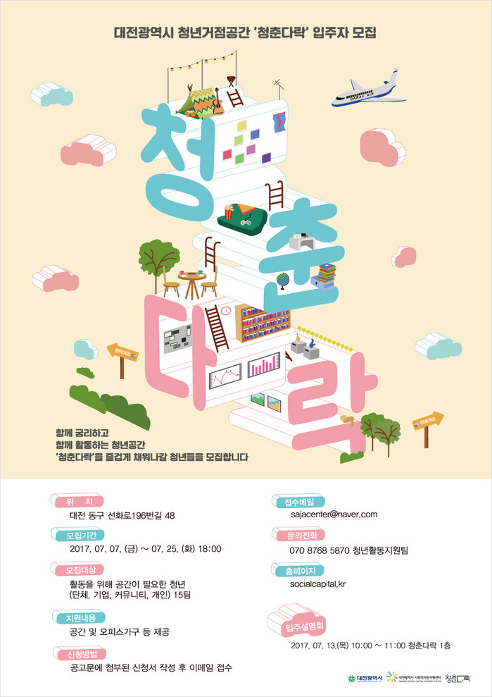 참여를 희망하는 청년(단체) 및 개인은 대전사회적자본지원센터에 신청하면 되고 궁금한 사항은 대전시 도시재생과 또는 대전사회적자본지원센터로 문의하면 된다.