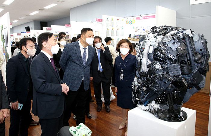 다목적실에서 펼쳐지는 학교별 작품 부스전에서는 삶의 공간과 문화, 자연환경을 시민참여형 공공미술 작품으로 완성한 대전정림중 타일 벤치 작품과 예술융합 협업으로 탄생한 보문고 드론 작품 등 인간과 환경, 그리고 삶과 예술에 대한 다양한 시각과 상상을 담은 다양한 학생과 교원 예술작품이 전시돼 있다.