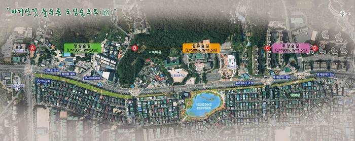 이후 주민설명회를 걸쳐 11월에 주민의견이 반영된 설계용역을 완료한 끝에 녹지 내 테마거리 조성사업이 본격 추진될 수 있게 됐다.