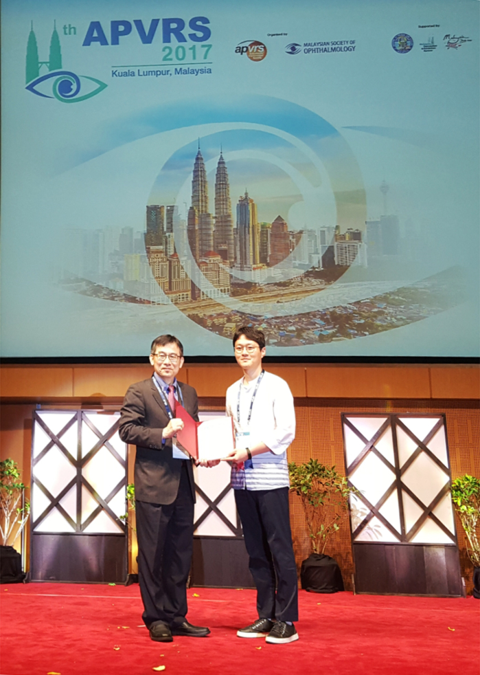 [세계로컬신문 최옥성 기자] 양산부산대병원(병원장 노환중)이 안과 박종호 전임의, 변익수 교수팀의 논문이 말레이시아 쿠알라룸푸르에서 열린 APVRS 2017(아시아-태평양 유리체망막 학술대회)에서 최고 포스터 상(Best Poster Award)를 수상했다고 13일 밝혔다.