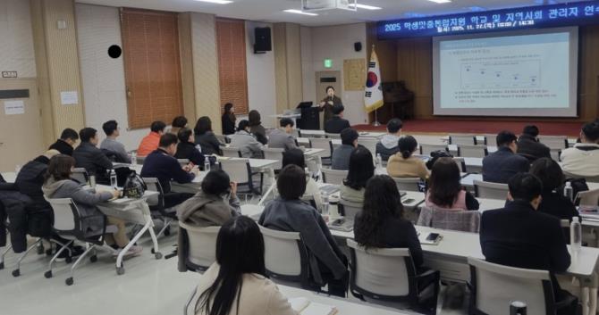 연수는 ▲학생맞춤통합지원 정책 방향 ▲2026년 제도 시행 시 학교 조직 구성 및 업무 분장 변화 ▲복합적 요구를 가진 학생에 대한 지원 절차 ▲지역사회 기관과의 연계 방안 등 실무 중심으로 구성됐다.