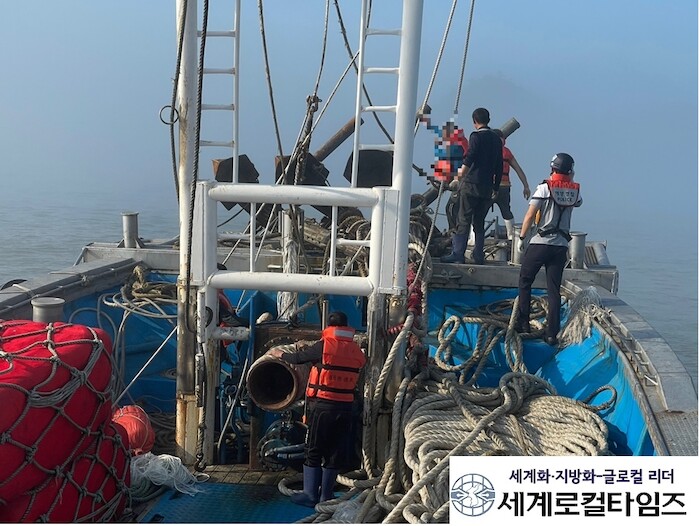 ▲목포해경이 충돌 사고 어선에 승선해 피해 여부 확인 및 안전관리를 실시하고 있다.(사진=목포해경) |