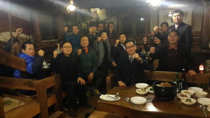 ▲ 세계일보 조사위원 경기도 양주시협의회가 28일 오후 양주시 소재 불곡산장에서 송년회를 열고 회원들이 단체로 파이팅을 외치며 기념촬영하고 있다.<이우춘 세계일보 조사팀장>