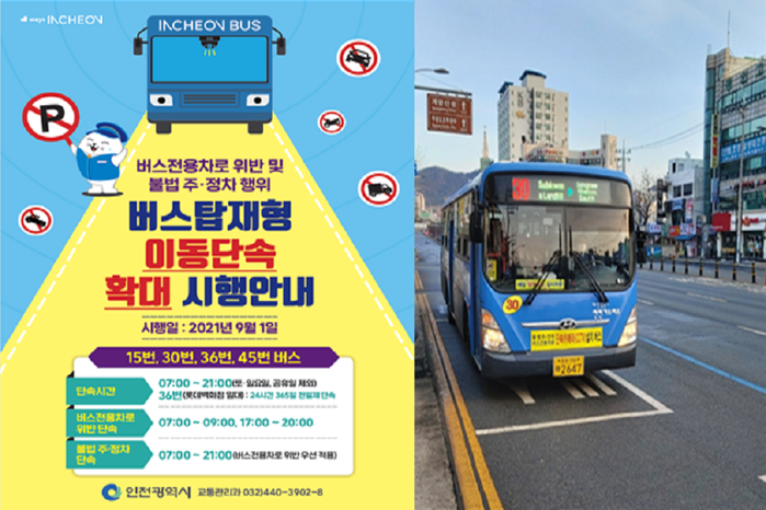 한편 시는 2022년까지 노선버스에 26대(BRT 2대)의 단속카메라를 추가 설치하고, 총 50대의 버스탑재형 이동단속 카메라로 인천시 전 구간에서 단속을 벌일 계획이다.