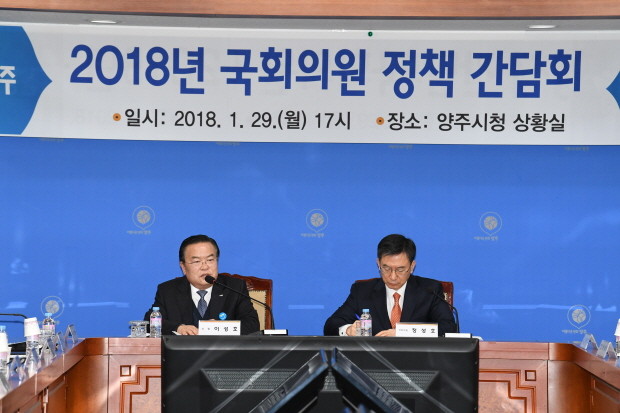 이날 간담회는 지역현안 사업 중 재원확보가 꼭 필요한 핵심사업과 신규사업들에 대해 단계별 대응전략을 마련하고 중앙부처와 국회의원, 양주시의 상호 협력체계를 구축하기 위해 마련됐다.