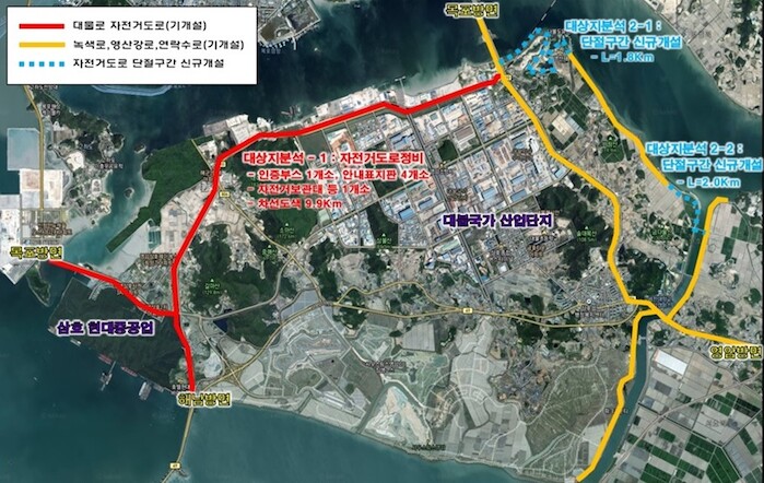 공모 선정으로 영암군은 총 6억 원을 들여 현대삼호중공업 정문~영산강하구둑~영산호관광지~세한대학교를 잇는 총 22.4km 구간을 정비한다. 구체적으로 자전거길 9.9km는 손보고, 단절구간 3.8km는 잇는다.
