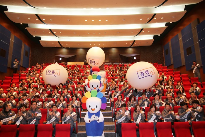 특히 이날 공명선거 퍼포먼스는 지난 동계올림픽에서 화제가 된 컬링경기를 패러디해 ‘흑색선전·금권선거·공무원선거관여’ 등 불법선거를 척결하고 공명선거 실천의지를 표명하는 내용으로 진행됐다.