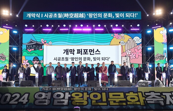 이날 개막식에 참여한 우승희 영암군수, 강찬원 영암군의회의장, 박찬모 재경영암향우회장 등 주요 인사들은 영암의 미래인 학생들에게 왕인의 문화를 빛으로 형상화한 ‘미래 등’을 전하는 퍼포먼스로 축제의 막을 열었다.