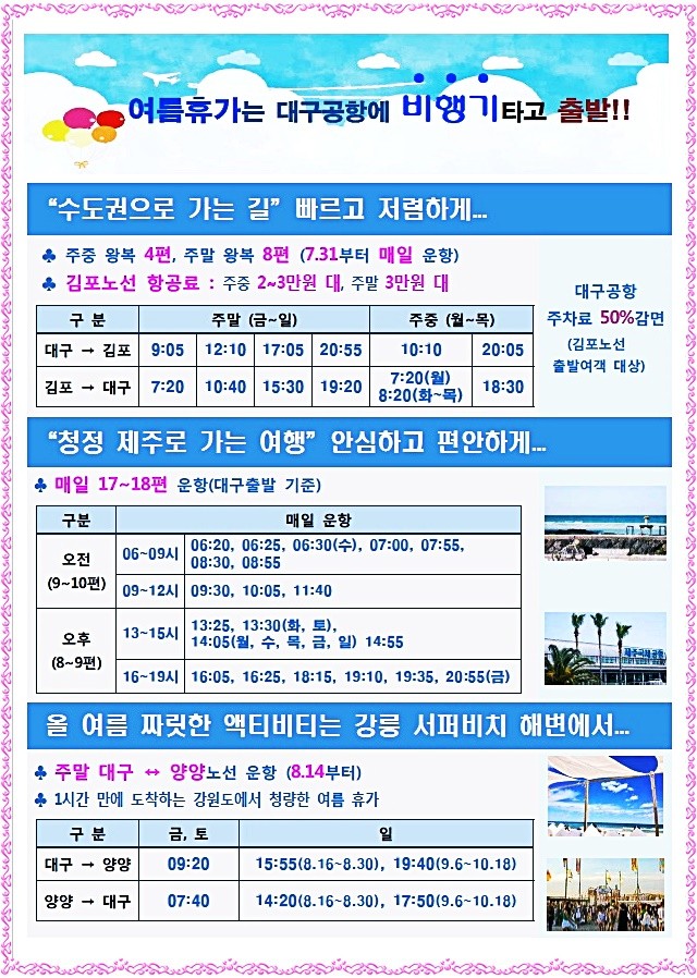 | ▲ 김포·양양 노선 개설에 대한 홍보 전다. (자료=대구시 제공) |