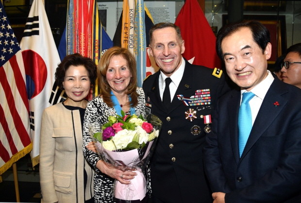 [세계로컬신문 고성철 기자] 안병용 경기도 의정부시장은 지난 5일 평택 미군기지 본부 로비에서 개최된 미8군 사령관 토마스 밴달(Thomas S. Vandal) 중장 전역식에 참석해 밴달 중장의 그동안 노고를 치하하고 밴달 부부 이름을 새긴 머그컵 및 컵받침 세트와 밴달 중장의 활동사진을 담은 사진첩을 선물했다.