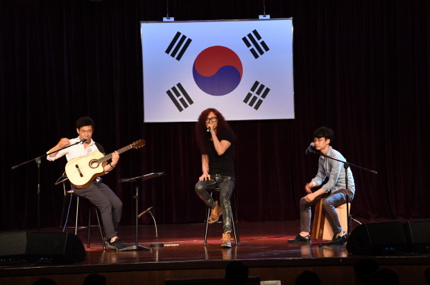 | ▲ 구리시청 대강당에서 1일 열린 월례조회에서 알에스프레소(RSprwsso)가 공연을 하고 있다.<사진제공=구리시청> |