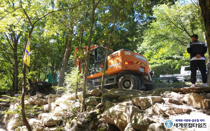 | ▲9일 오전 완주군이 동상면 계곡 불법시설물에 대한 행정대집행에 나서고 있다 ⓒ완주군 |