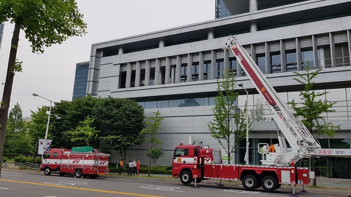 서부소방서는 19일 둔산동 LH 대전충남지역본부에서 소방차 부서위치와 송수구 확인 및 고가사다리차 전개 등의 소방훈련을 진행했다.