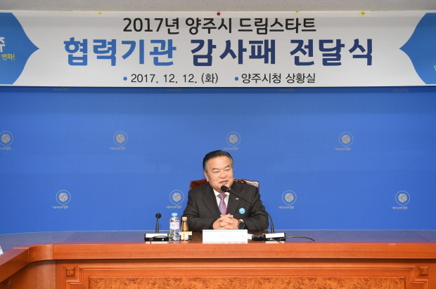 이날 전달식에서 이성호 양주시장은 드림스타트 사업을 위해 지속적인 지원을 아끼지 않았던 45개 협력기관 대표에게 감사패를 전달했다.