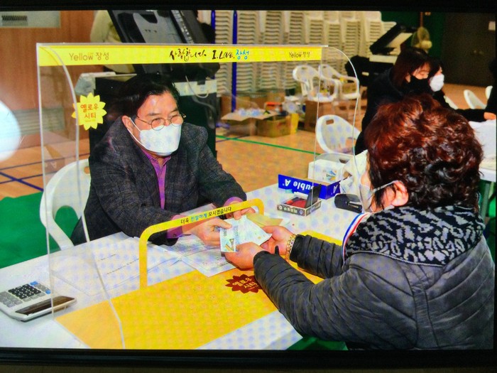 이중 코로나19 재난 지원금과 농어민 공익수당 등 정책수당으로 100억원이 지급되고 전 군민에게 10 만원씩 재난 지원금도 상품권으로 지급했다,