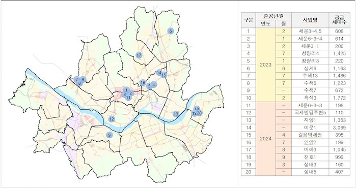 ▲ 서울시 아파트 사업별 입주예정물량 지도 (2023~2024년).(사진=서울시) |
