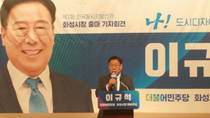 이 전 서기관은 7일 오후 2시 화성시근로자종합복지관 1층 다목적홀에서 화성시 출입 언론인 60여 명이 참석한 가운데 오는 6월13일 지방선거 화성시장에 도전장을 내 걸었다.