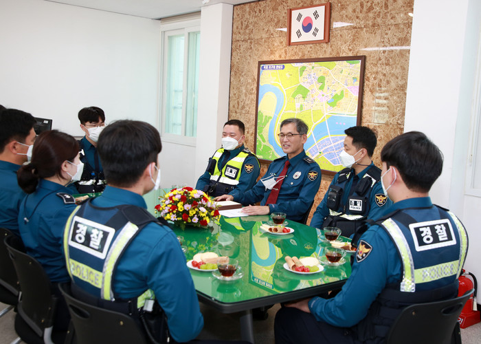 윤 경북지방경찰청장은 이날 격려 오찬과 간담회를 열고 현장직원 개개인의 건의사항을 듣고 지역사회에서의 경찰 역할에 대해 소통하는 시간을 가졌다.