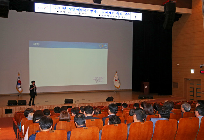 충남여성정책개발원 이경하 연구원을 강사로 초빙해 진행된 이번 교육은 일상 속 사례를 통한 '성별영향분석평가제도의 이해'를 주제로 진행했으며 이 연구원은 성별영향분석평가제도에 대한 소개에 이어 성 평등 조직문화 조성 방안과 지방자치단체의 성인지 정책기획 방법 등을 소개했다.