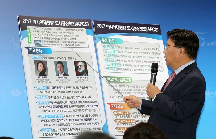 권 시장은 이날 주요 시정으로 ▲2017 아시아태평양도시정상회의(APCS) ▲스마트 에너지 제로 도시 대전 추진 ▲전통시장 화재예발 특별대책을 설명했다.