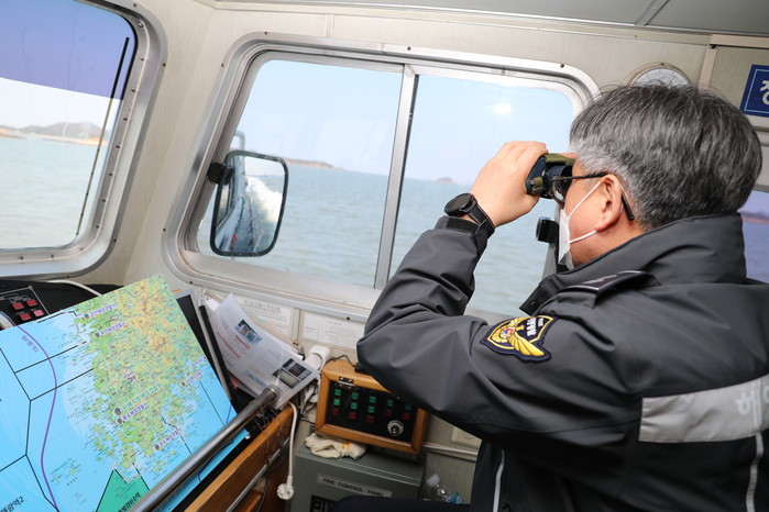 | ▲김종욱 서해지방해양경찰청장이 10일 신안지역 연안여객선 항로를 살펴보고 있다.(사진=서해지방해양경찰청) |