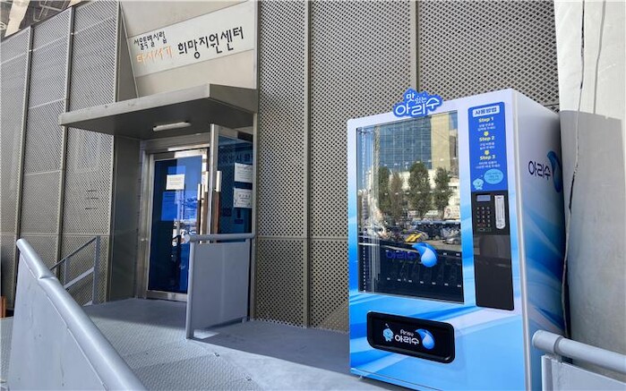 [세계로컬타임즈 이효진 기자] 서울시는 지난달 17일 서울시 중구 소재 노숙인 지원 시설인 ‘다시서기희망지원센터’에 ‘아리수 무료 자판기’ 를 설치했다.