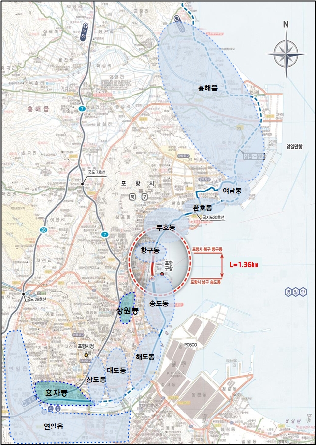 포항시 북부권과 남부권을 연결하는 중요한 간선도인 국가지원지방도20호선은 그 동안 단절구간으로 인해 포항철강공단으로 출퇴근하는 차량들이 도심지를 통과할 수 밖에 없어 극심한 교통정체를 빗는 등 많은 불편을 초래해 왔다.