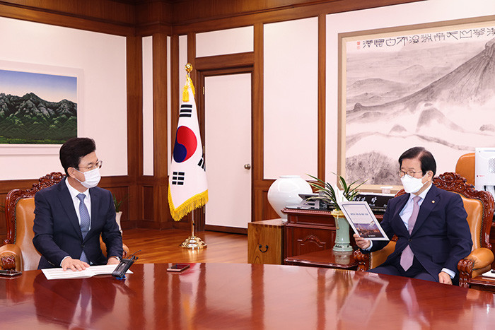 이날 허태정 시장은 박병석 국회의장에게“대전의 새로운 성장동력 확보를 위해서는 주요 국비사업이 순조롭게 해결되는 것이 중요하다”며 지역의 미래 성장기반 마련을 위해 국회 차원의 전폭적인 협조를 요청했다.