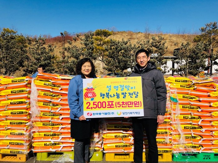 [세계로컬신문 홍윤표 조사위원] 한국동서발전(주) 당진화력본부(본부장 박상준)가 설 명절을 맞아 1일 5000만원 상당의 쌀 2050포를 당진시복지재단(이사장 방두석)에 기탁했다.