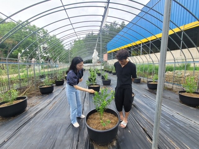 | ▲화순군농업기술센터가 블루베리 묘목을 지원한 농장에서 현장 기술 교육을 진행하는 모습.(사진=화순군) |