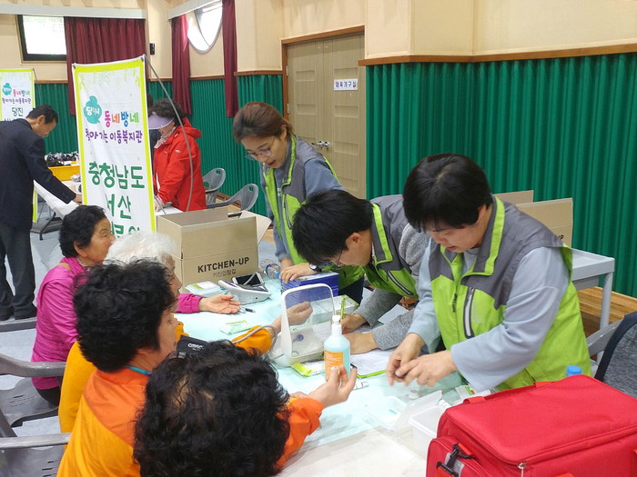 [세계로컬신문 홍윤표 조사위원] 충남사회복지공동모금회 지원사업으로 취약계층과 취약지역의 복지서비스 접근성 강화를 위해 당진시지역사회보장협의체에서 2016년부터 운영 중인 ‘당진시 동네방네 찾아가는 이동복지관’의 세 번째 방문이 11일 오전 대호지면 조금초등학교 일원, 당진중학교 대호지분교장에서 열렸다.