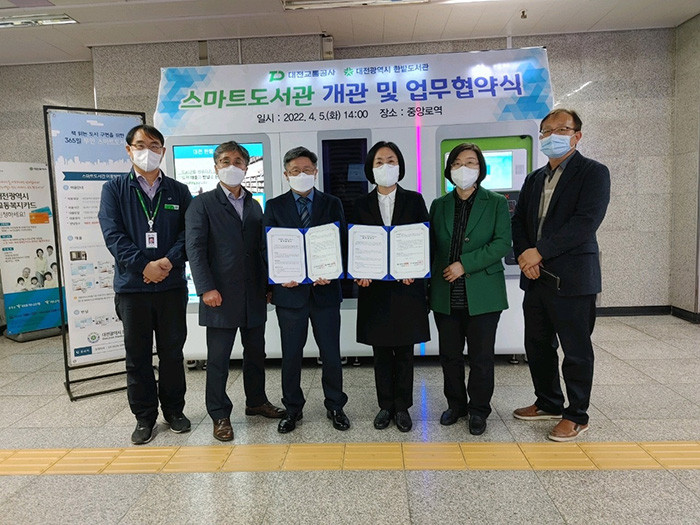 [세계로컬타임즈 민순혜 기자] 한밭도서관은 지난 5일 중앙로역에서 대전교통공사와 ‘스마트도서관’ 개관식 및 업무 협약식을 체결하고 스마트도서관을 운영하고 있다.