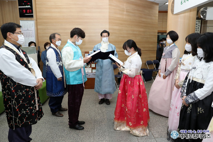 [세계로컬타임즈 조주연 기자] 전북 고창군이 4일 하루동안 한복을 차려입고 민원실 방문 군민을 응대했다.