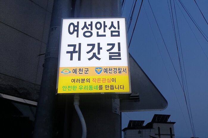 군은 예천읍 남본리 21-4 외 8개소에 CCTV를 설치했고, 대심리·노하리 일원에 도로표지병, 로고젝터, 안심간판 등을 설치해 야간에 귀가하는 보행자의 심리적 안정감과 각종 범죄에 대한 경각심을 높여 범죄예방효과에 상당히 기여할 것으로 기대된다.