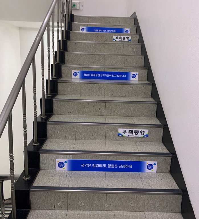 계단에 부착된 청렴 문구는 직원들이 직접 만든 문구여서 더 의미가 크다.