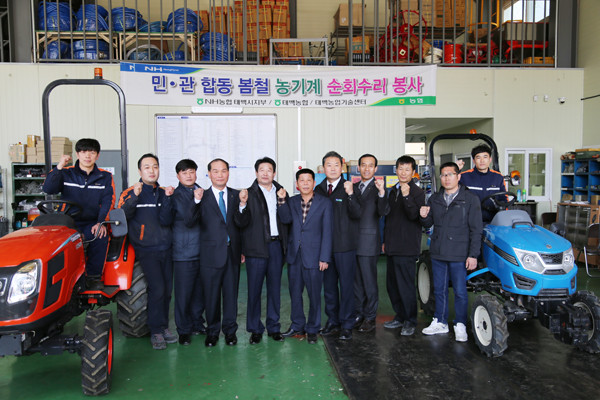 민·관 합동 농기계 순회수리봉사는 매년 농협과 농업기술센터 합동으로 태백지역 13개 영농회를 순회하면서 이뤄지며 4일 창죽영농회를 시작으로 14일간 순회수리 봉사를 실시한다.