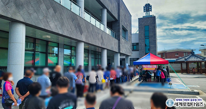 | ▲김제시 재난지원금 신청 대열(세계로컬타임즈 DB) |