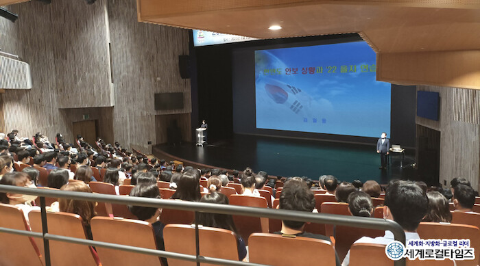 강사로는 대한민국 재향군인회 소속의 김일용 교수가 초빙됐다. 김 교수는 ‘한반도 안보 상황과 2022 을지연습’이라는 주제로 우리 안보 현실과 안보의 중요성, 2022년 을지연습 주요 훈련 계획과 관련한 내용으로 강의했다.