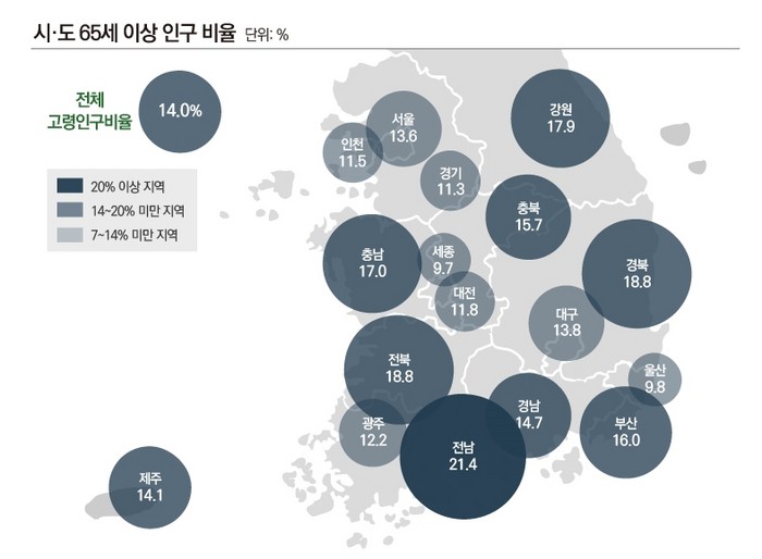 이번 발표에서 한국이 고령사회로 진입한 반면 대전시는 여전히 고령화사회에 머물고 있는 것으로 나타났다.