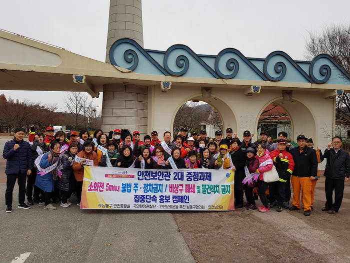 23일 남동구에 따르면 구 안전총괄과, 공원녹지과, 남동소방서, 남동구 안전보안관, 남동구 지원민방위대, 안전문화운동추진 남동구협의회, 파랑새봉사단, 안전모니터봉사단 등 60여명이 참여한 가운데 치러진 이날 행사는 산불예방과 안전보안관 2대 우선 과제에 대한 집중 홍보 활동을 했다.