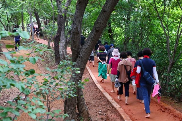 시는 사업비 총 2억 원을 들여 기존 산책로 나무숲 그늘 밑에 길이 400m, 폭 1.5m, 깊이 20cm의 황톳길을 조성했으며, 세족장과 신발 보관함 등 편의시설도 설치해 시민들이 맨발로 폭신폭신한 황톳길을 걸으면서 도심 속 자연의 기운을 물씬 느낄 수 있게 했다.