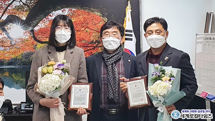 [세계로컬타임즈 조주연 기자] 전북 정읍시 이·통장협의회가 정읍시청 김영덕 총무팀장과 김신영 총무팀원에게 감사패를 전달했다.
