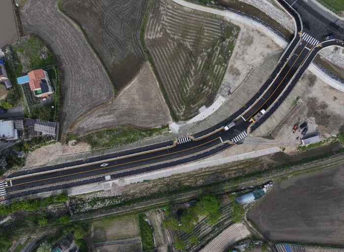 이번 사업은 총사업비 53억 원을 투입해 교량 1개소 포함 총 연장 246.0m, 폭 15.0m 도로를 개설하는 사업으로 도로 개통시 교통 흐름 개선과 함께 향한리 주민의 이동 편의가 크게 향상될 것으로 기대된다.