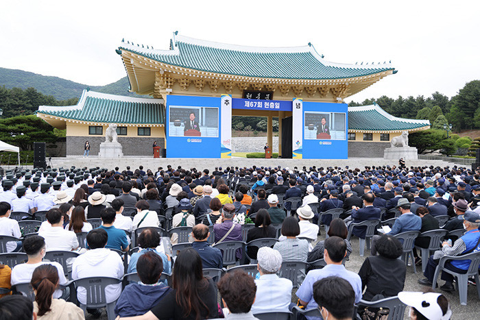 [세계로컬타임즈 민순혜 기자] 대전시는 6일 오전 국립대전현충원 현충광장에서 허태정 대전시장, 국가유공자, 보훈가족, 학생, 일반시민 등 약 3천여 명이 참석한 가운데 제67회 현충일 추념식을 거행했다.