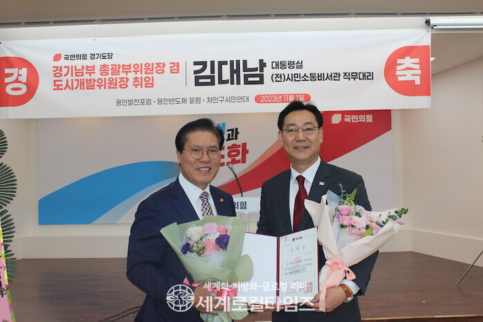 이 자리엔 국민의힘 경기도당 송석준 위원장이 임명장 수여를 위해 참석했으며 지역지지자들과 ‘용인발전포럼’, ‘용인반도체포럼’, ‘처인구시민연대’ 등이 함께 김대남 신임 총괄부위원장의 취임을 위해 참석했다.