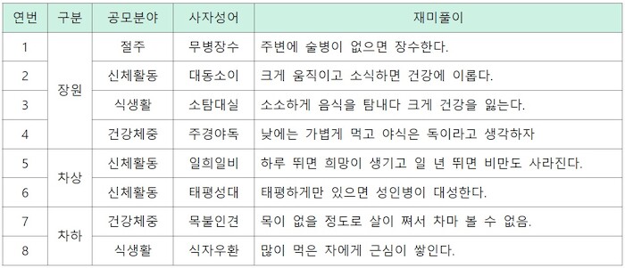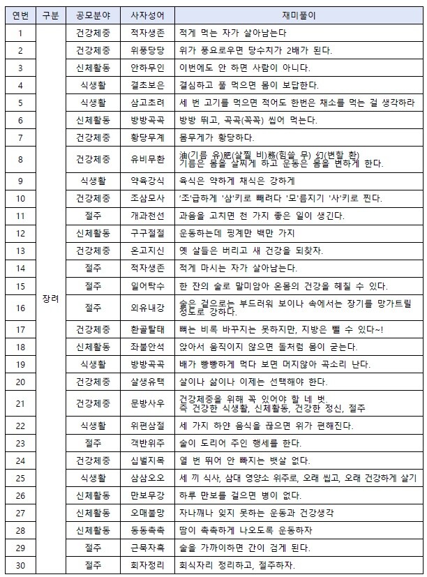 ▲ 사자성어 글짓기 ‘건강별곡’ 공모전 수상작 |